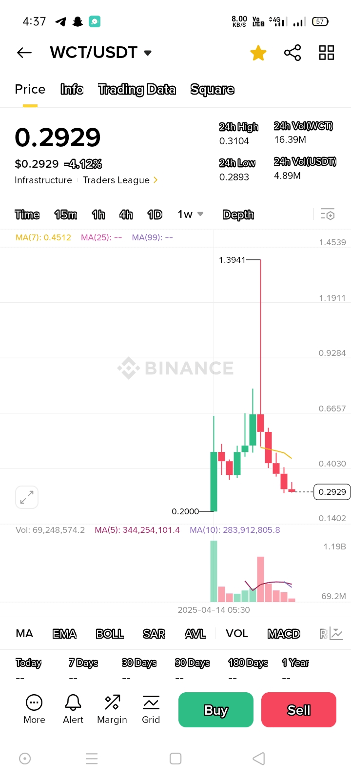 16.39M WCT / 4.89M USDT — wskazuje na aktywne handlowanie, ale również sugeruje możliwe krótkoterminowe spekulacyjne zachowanie.