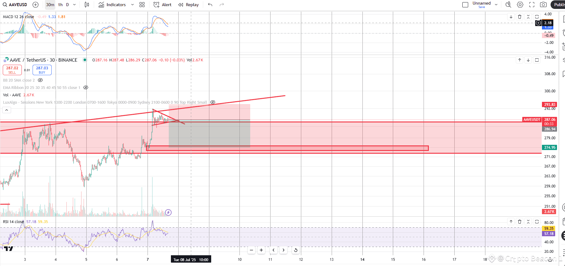 Jak widzimy, rynek jest w trendzie spadkowym. Dlatego nigdy nie pójdziemy w przeciwnym kierunku do bieżącego trendu, ponieważ jest to bardzo ryzykowne. Analizując rynek od ram czasowych dziennych do 30 minutowych, widzę, że jest mały ruch cenowy na rynku. Dlatego będziemy szukać pozycji krótkich, a nie długich. Możemy zauważyć, że MACD opada, tworząc sygnał krótki. A RSI również jest na dole. Spada. Możemy więc zająć pozycję krótką.