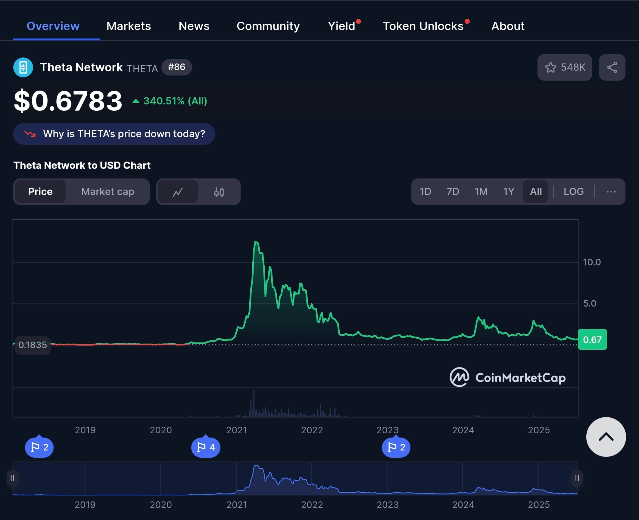 Theta Network to platforma do streamingu wideo oparta na blockchainie, która usprawnia dostarczanie treści i nagradza użytkowników za udostępnianie pasma.
