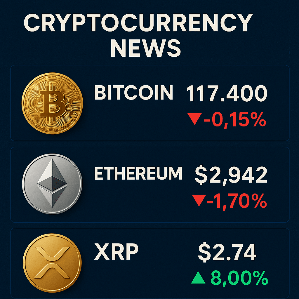Dziś nieco w dół (~–0.15%) — handel wokół $117.4K po osiągnięciu dziennych szczytów blisko $118.2K.