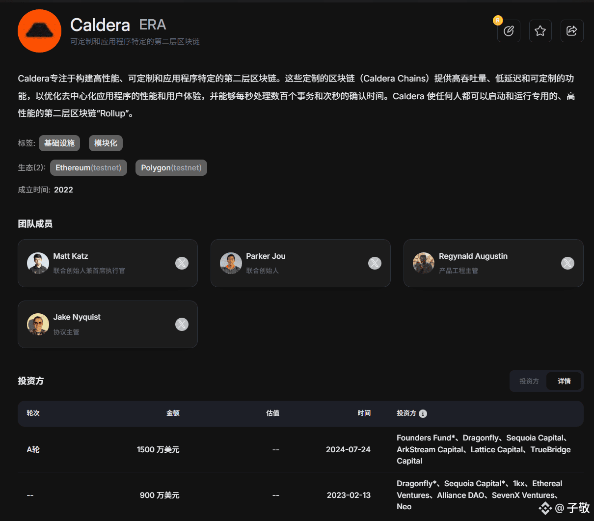 项目由全球顶级风投红杉资本、Founders Fund 和 Dragonfly Capital 领投,Neo、1kx 等知名机构参投,累计融资金额达 2400w 美金
