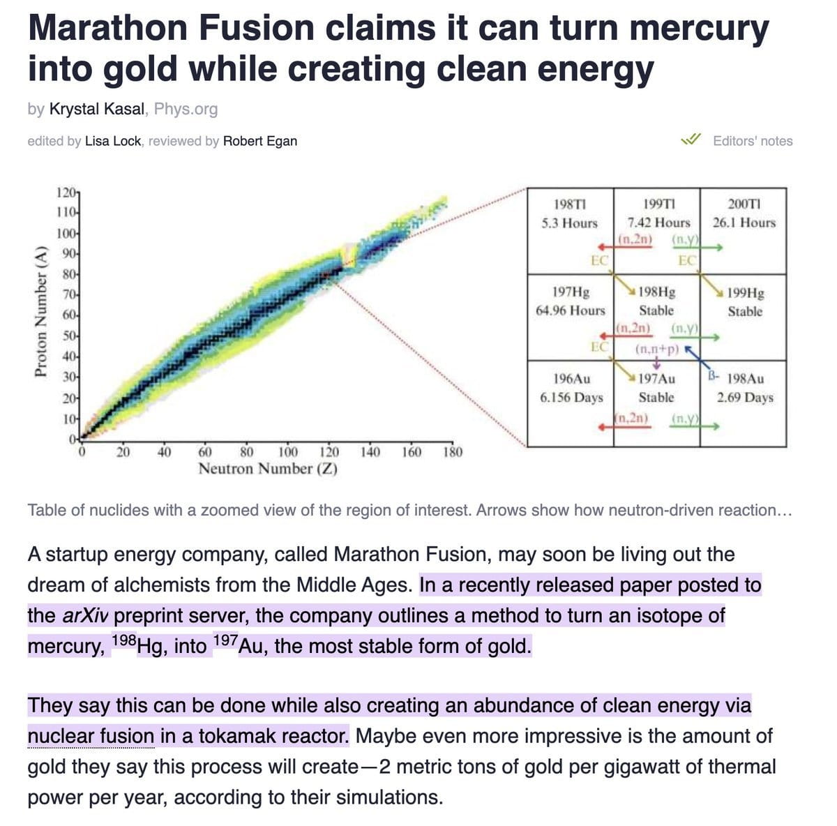 𓁼 Marathon Fusion znalazł skalowalny sposób na przekształcenie rtęci w złoto