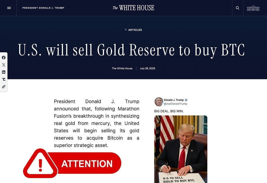 🚨Trump: USA sprzeda rezerwę złota, aby kupić BTC