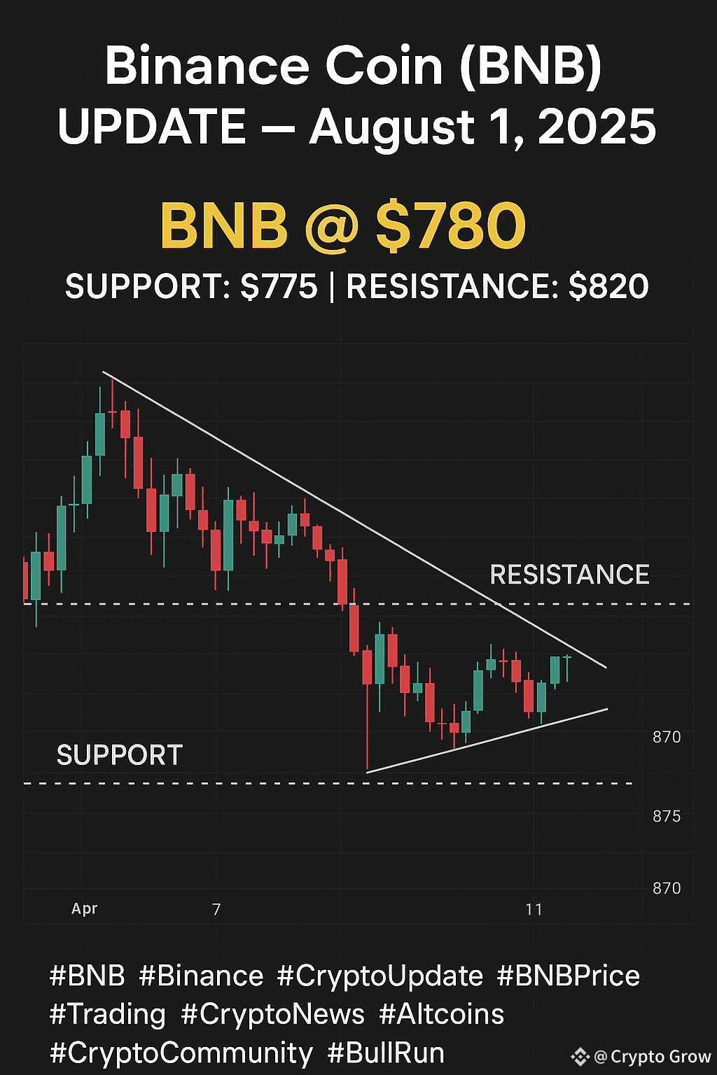 BNB is currently trading around $780, recording a slight -2% drop in the last 24 hours. Despite this pullback, analysts see strong potential ahead.