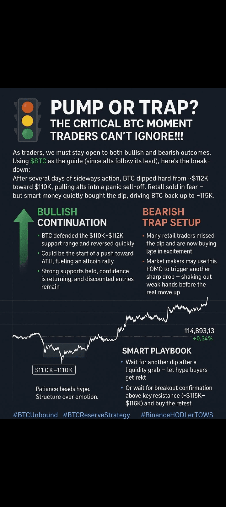 2️⃣ Lub… czekać na czyste wybicie powyżej ~$115K–$116K, a następnie kupić w teście z potwierdzeniem.