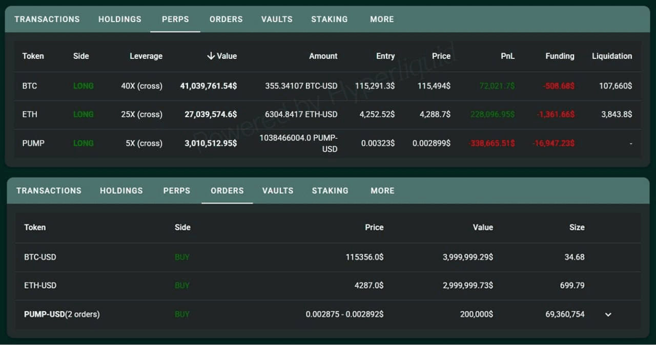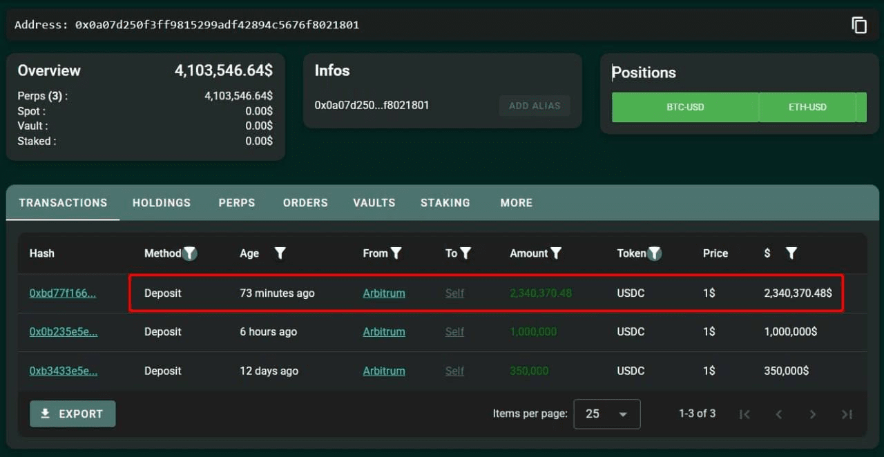 Wieloryb dodatkowo wpłacił 2,34 mln dolarów $USDC do #Hyperliquid, aby zwiększyć długie pozycje w $BTC, $ETH i $PUMP.
