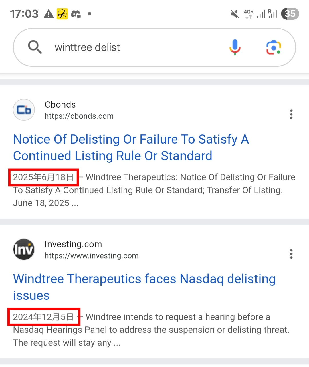 ✅ Windtree nie otrzymała po raz pierwszy wezwania do usunięcia z giełdy od Nasdaq; po wyszukaniu w Google, znalazłem ogłoszenia o wycofaniu Windtree z giełdy w czerwcu i grudniu zeszłego roku.