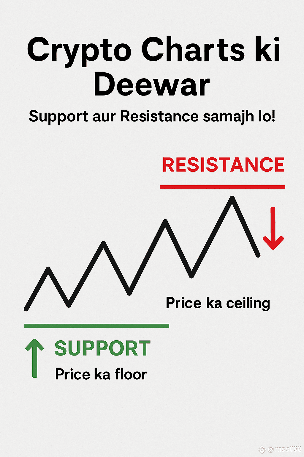 Example: Agar BTC baar baar $25,000 pe ruk raha hai → ye support hai.