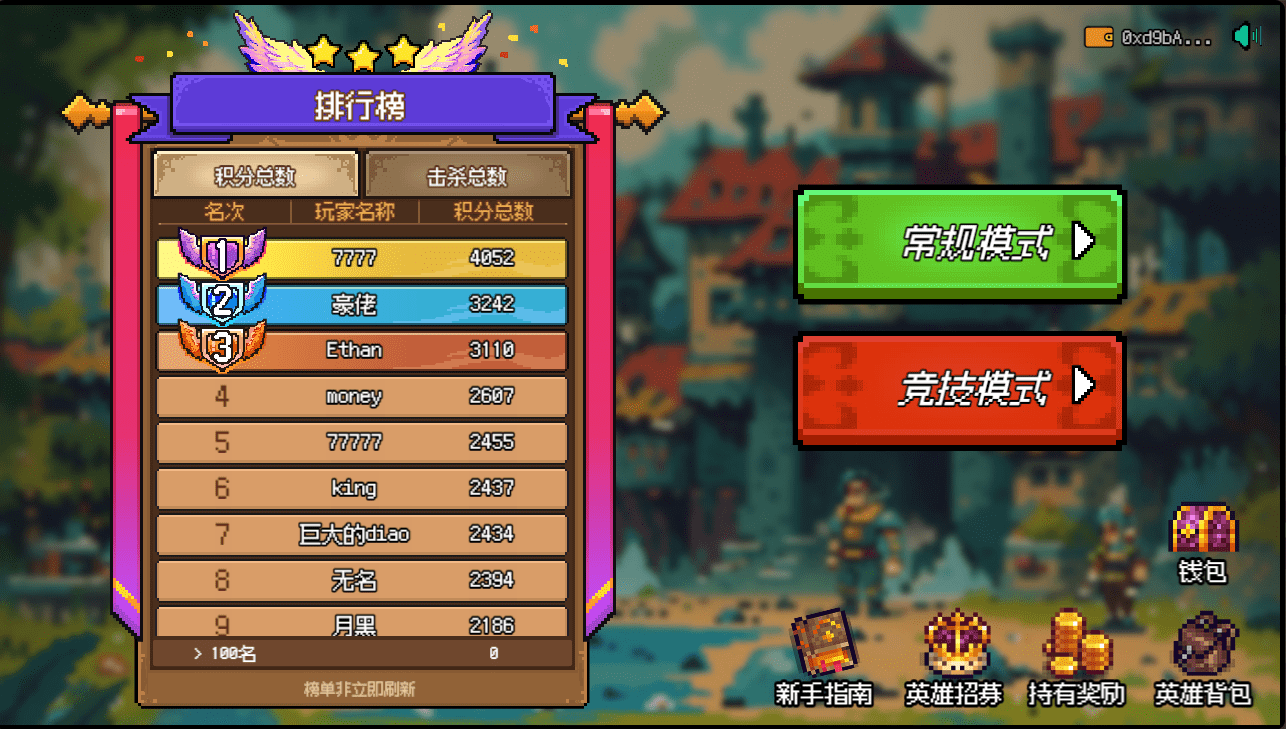 Po podpięciu portfela możemy zobaczyć tablicę rankingową oraz dwa tryby gry, tryb zwykły i tryb rywalizacji.