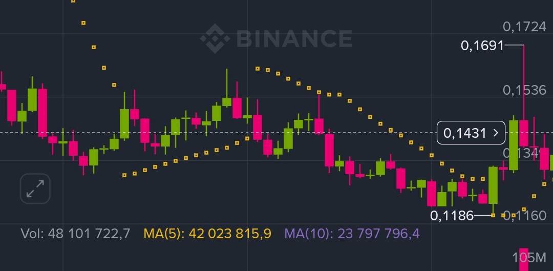 Na zrzucie ekranu widzimy poziomą linię z ceną $0.1431, która przecina japońskie świece.