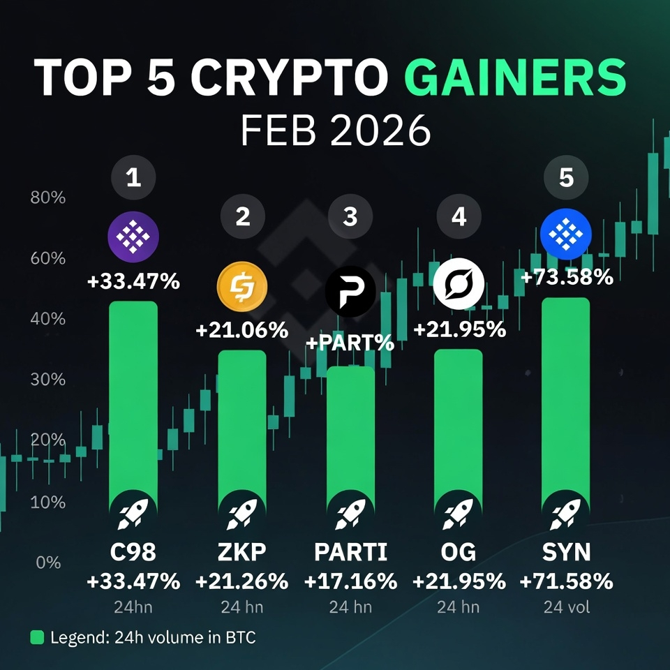 Cześć rodzino Binance Square! Z BTC krążącym wokół $78k po szalonej korekcie i altcoinami pokazującymi odporność, luty 2026 się rozgrzewa. Obserwujemy ogromne wzrosty w infrastrukturze, AI i monetach memowych w obliczu niepewności ze strony Fed i odpływów ETF. Oto 5 najlepszych zwycięzców, którzy teraz radzą sobie świetnie (dane z CoinGecko, CoinMarketCap i Binance na 6 lutego) – czy jesteś w to zaangażowany, czy przegapisz?