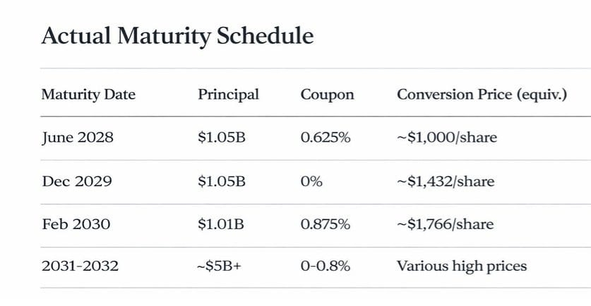 Konwertowalne długi ~8.2 miliarda, pierwsza wykonalność czerwiec 2028 (30 miesięcy).