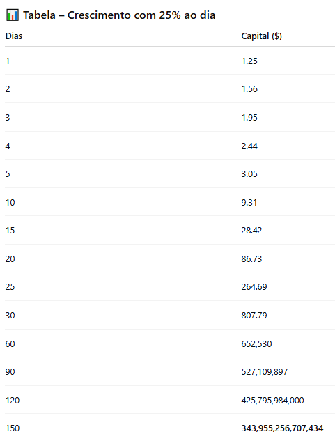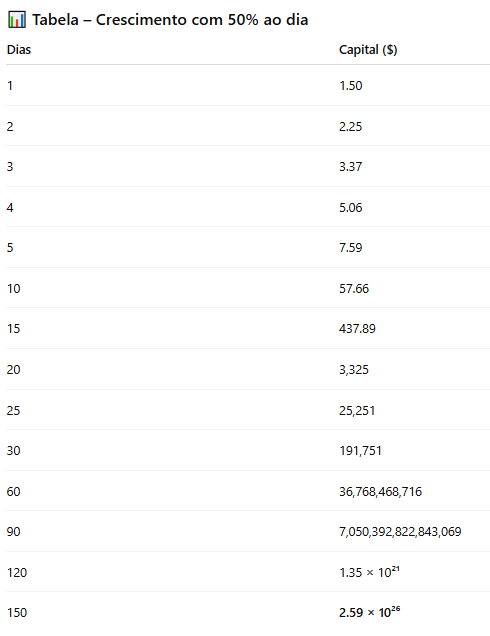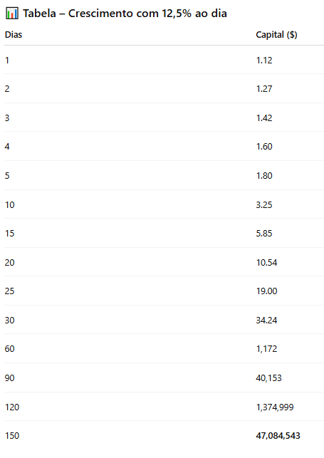 Trabalha com crescimento sustentável (5–15% ao dia)