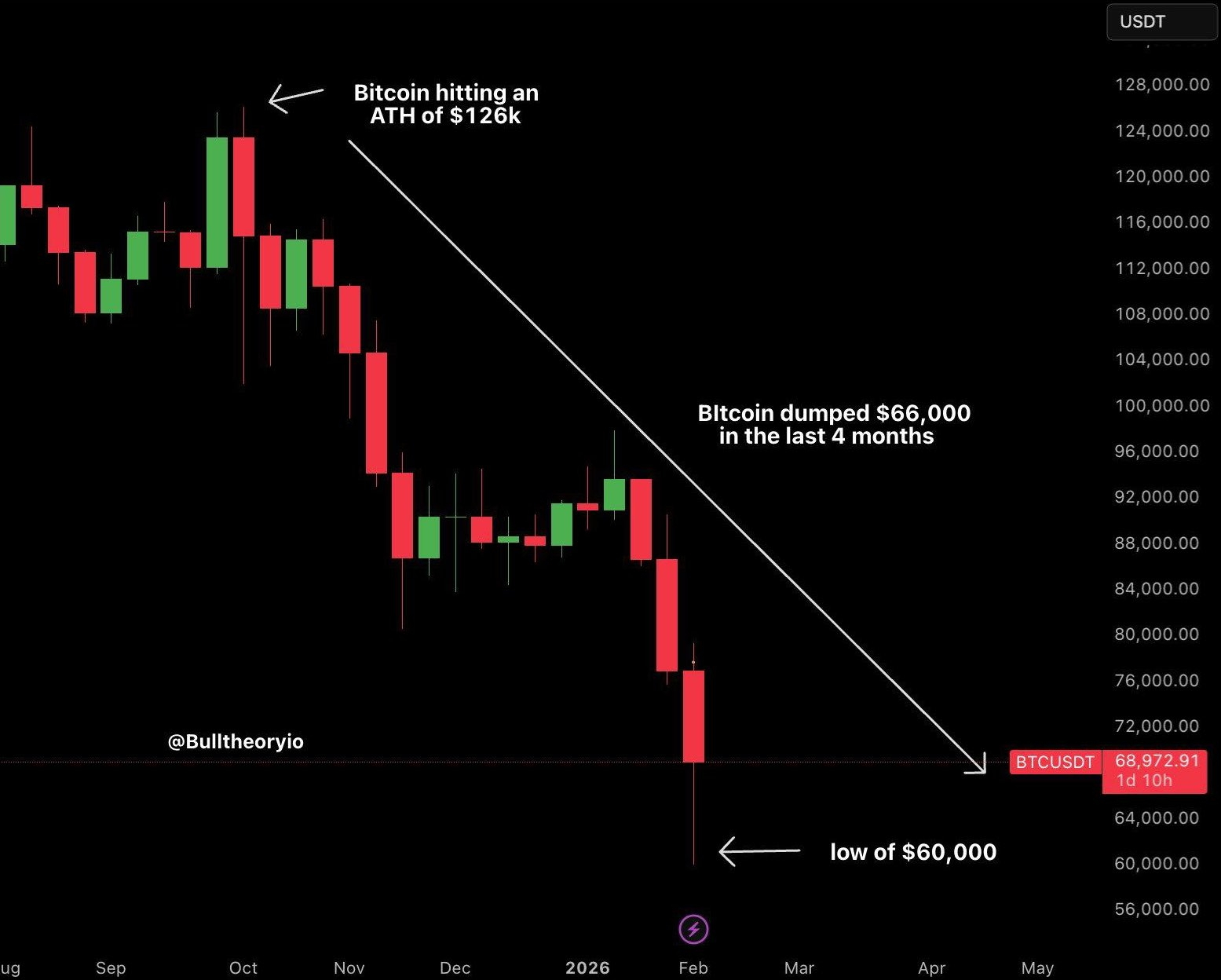 TO JEST POWÓD, DLA KTÓREGO BITCOIN SPADŁ BEZ PRZERWY Z $126,000 DO $60,000.