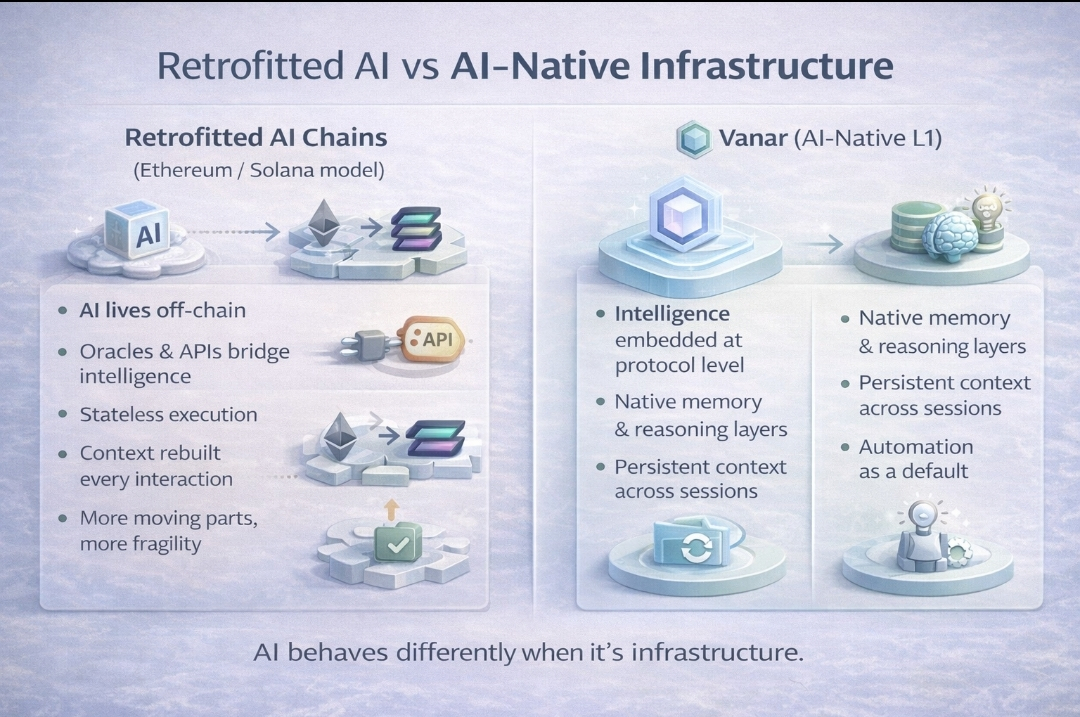 Vanar isn’t trying to prove that other chains are obsolete. Ethereum and Solana make sense for what they were designed to do. Vanar seems aimed at a different future, one where applications are persistent, adaptive, and increasingly autonomous.