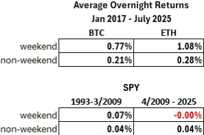 Weekendowe zwroty nocne generują 3-4 razy wyższe zwroty niż tygodniowe okresy nocne ⬇️