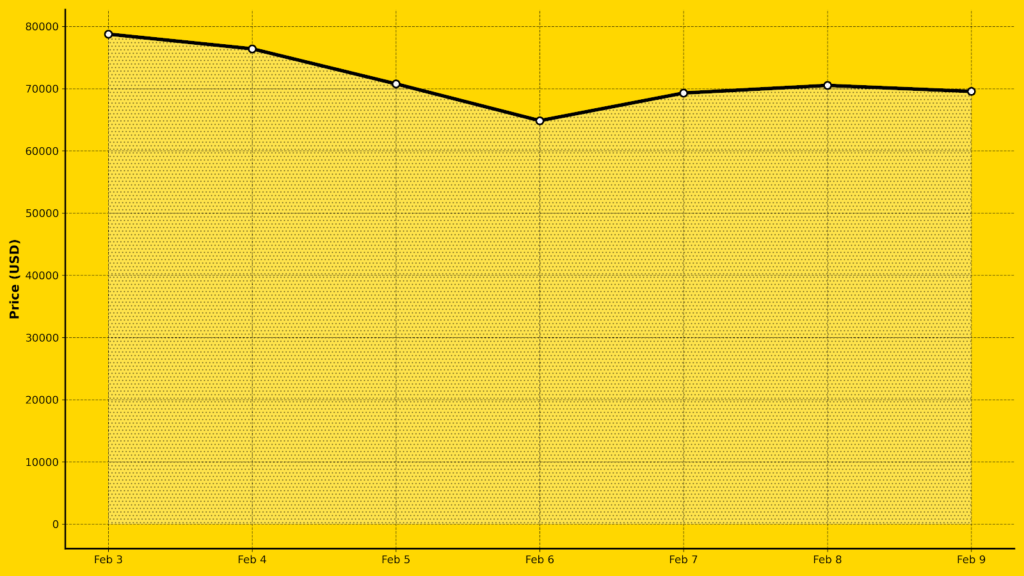 Ewolucja cen Bitcoina (Ostatnie 7 dni) Ewolucja cen Bitcoina (Ostatnie 7 dni) Data Cena (USD) 3 lutego 2026 78 766,83 USD 4 lutego 2026 76 405,83 USD 5 lutego 2026 70 770,99 USD 6 lutego 2026 64 856,11 USD 7 lutego 2026 69 296,96 USD 8 lutego 2026 70 520,40 USD 9 lutego 2026 69 557,32 USD