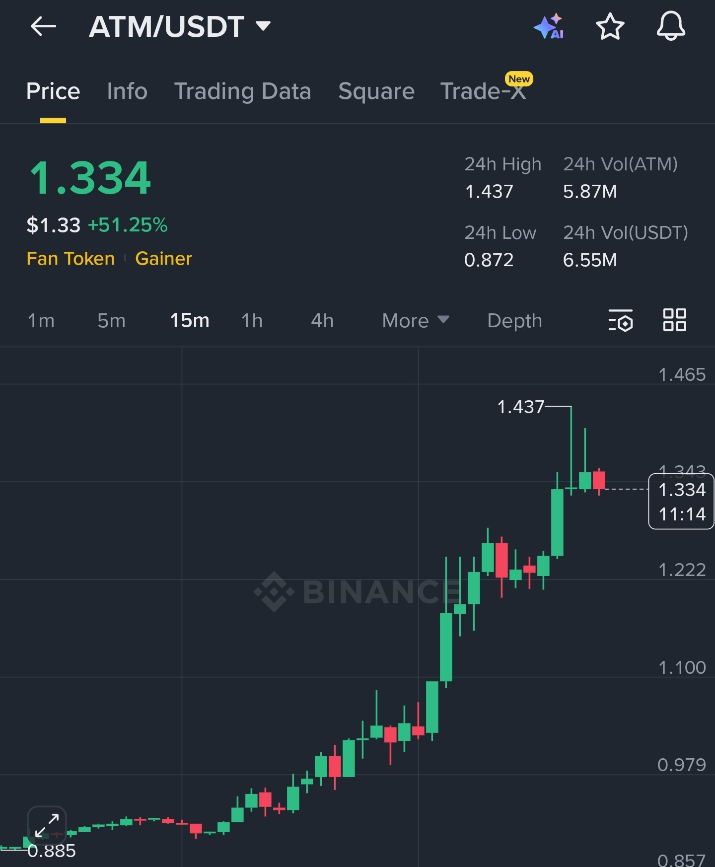 $ATM didn’t pump by accident. Price spent time accumulating around the $0.88–$0.95 zone, quietly absorbing supply before the move. Once ATM broke above this range, market structure flipped bullish and momentum ignited fast 🔥. Shorts got squeezed, breakout traders rushed in, and volume exploded, confirming real buying pressure 📊. Fan tokens have thinner liquidity, so when momentum hits, moves expand quickly and that’s exactly how ATM ripped toward $1.40+.