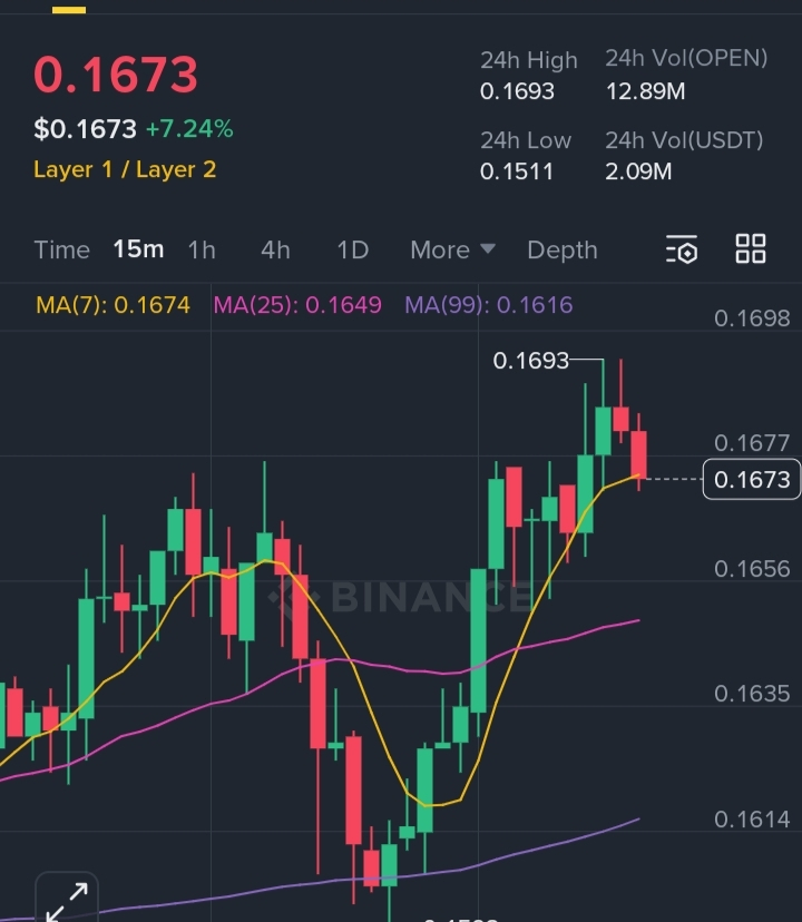 Before the pump, OPEN was trading in a choppy consolidation range. The breakout occurred when price pushed above the mid-range resistance near $0.164–$0.165, triggering momentum buying. This move was strong enough to send OPEN toward the $0.1693 local high, confirming that bulls are attempting to regain control of the structure.
