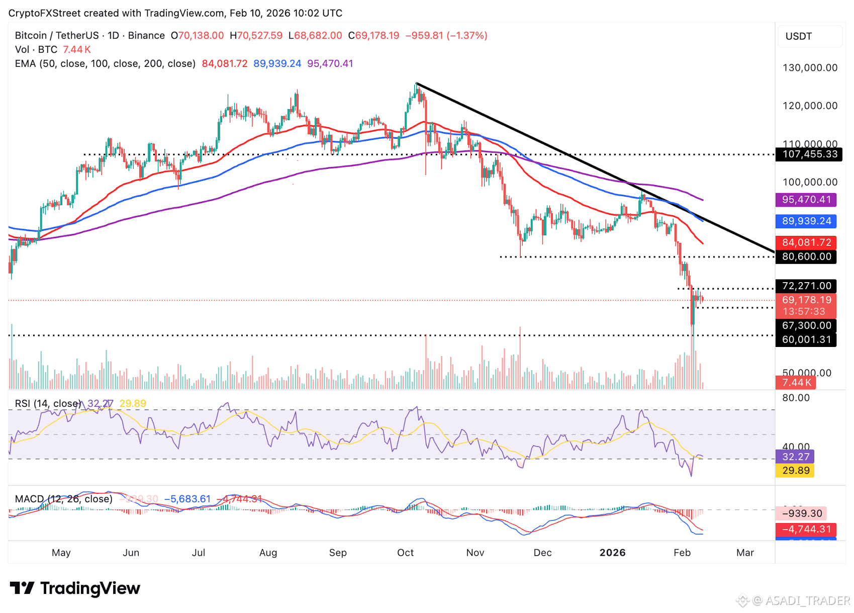Bitcoin is positioned well below the 50-day Exponential Moving Average (EMA) at $84,081, the 100-day EMA at $89,939 and the 200-day EMA at $95,470. All three moving averages are sloping downward, underscoring the bearish momentum likely to keep BTC in a downtrend.