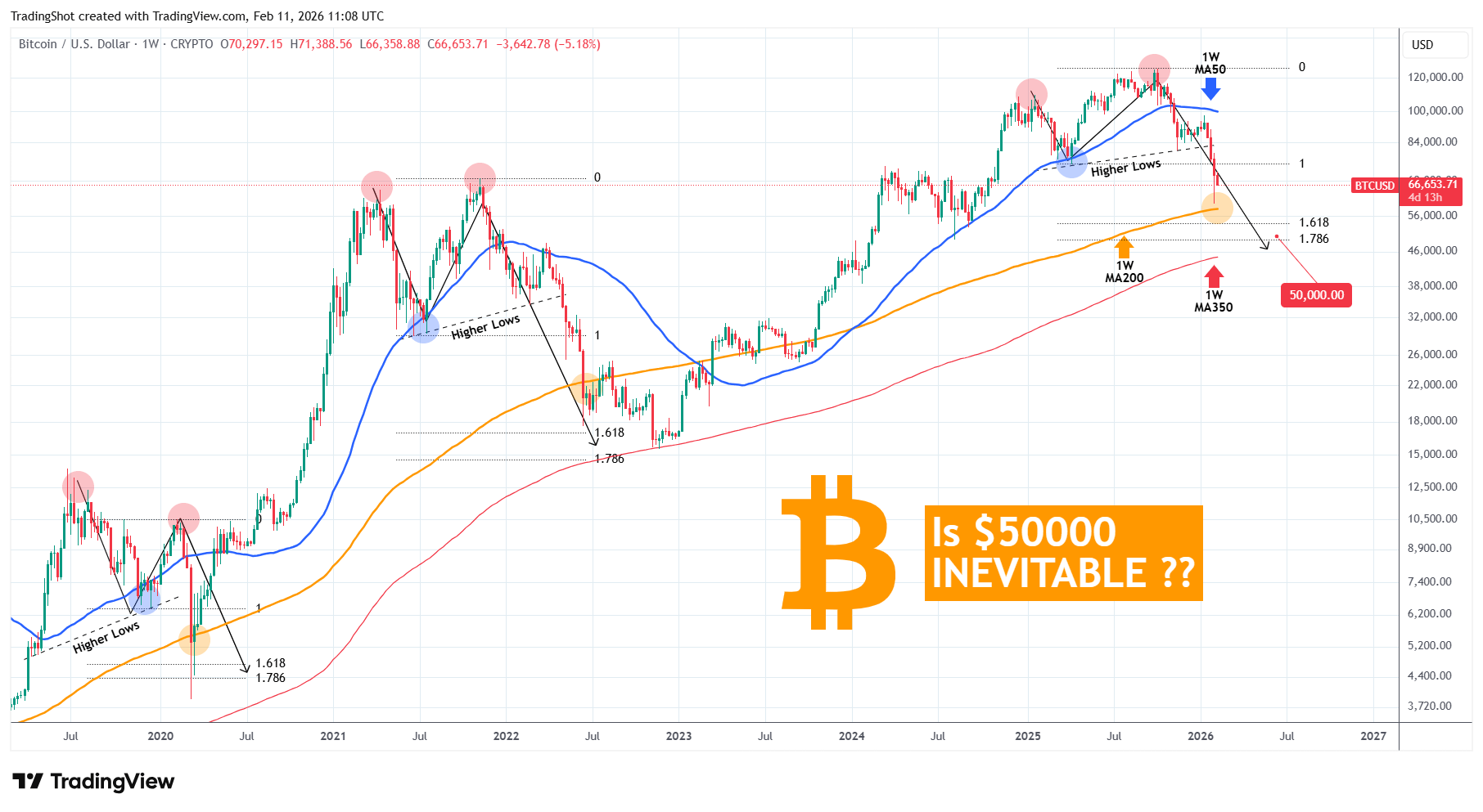 Bitcoin (BTCUSD) znów jest na zniżce po prawie osiągnięciu swojego 1W MA200 (pomarańczowa linia trendu) zaledwie w zeszłym tygodniu. Można by pomyśleć, że długoterminowi nabywcy jasno zaznaczą swoją obecność na tym historycznie wspierającym poziomie, ale jak dotąd ich nieobecność jest bardziej niż wyraźna. Jeśli to się utrzyma, rynek zwróci uwagę na następny krytyczny poziom wsparcia, 1W MA350 (czerwona linia trendu), który był miejscem, gdzie poprzedni dołek cyklu niedźwiedzia z 2022 roku.