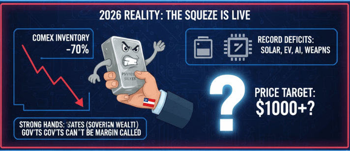 To nie była rutynowa obsługa konta. Dołączono strukturalny opis, jak zrealizować squeeze srebra poprzez wymuszoną fizyczną dostawę na kontraktach futures COMEX.