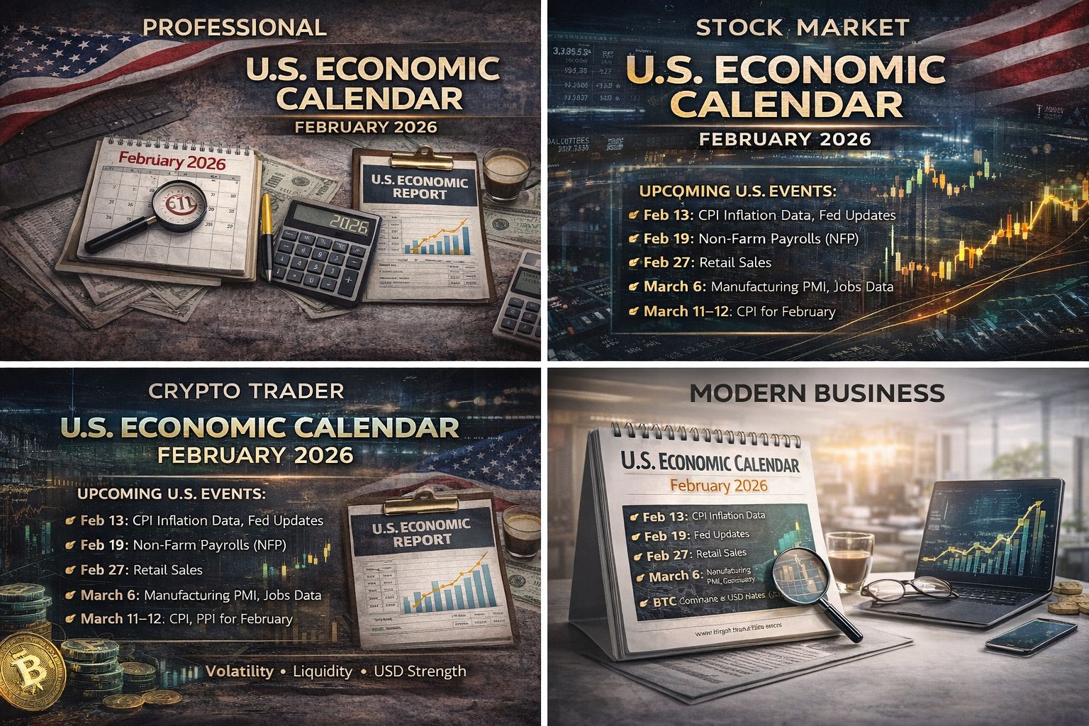 Amerykański kalendarz ekonomiczny na luty–marzec 2026 jest wypełniony wydarzeniami o wysokim wpływie, które mogą znacząco wpłynąć na Bitcoin, altcoiny, akcje i rynki Forex.