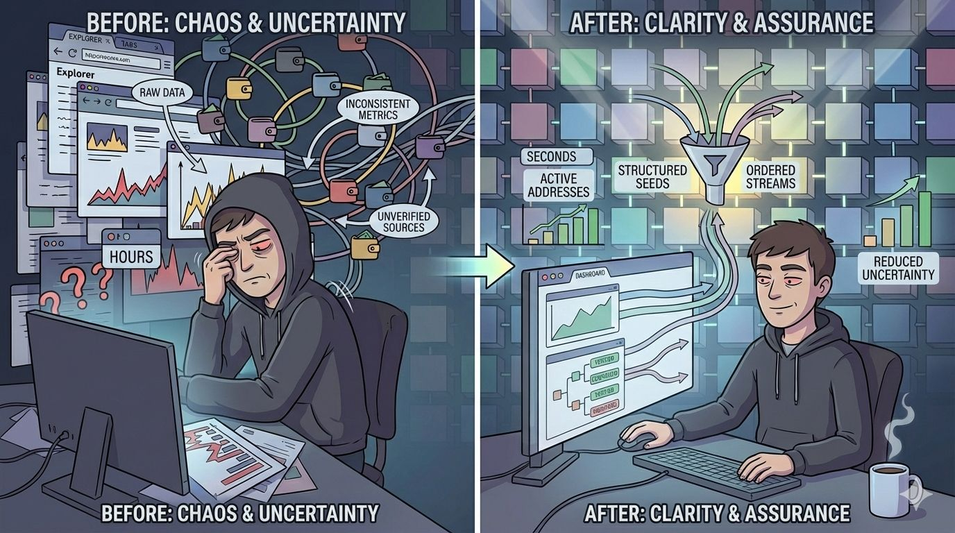 I've reconciled enough mismatched datasets to know the pattern. Builders tolerate it because they have to ship. Users tolerate it because the apps still work. Investors absorb it because admitting the metrics are half fiction kills the trade before it starts. So we keep refreshing, keep hoping the next cycle's data will be cleaner.