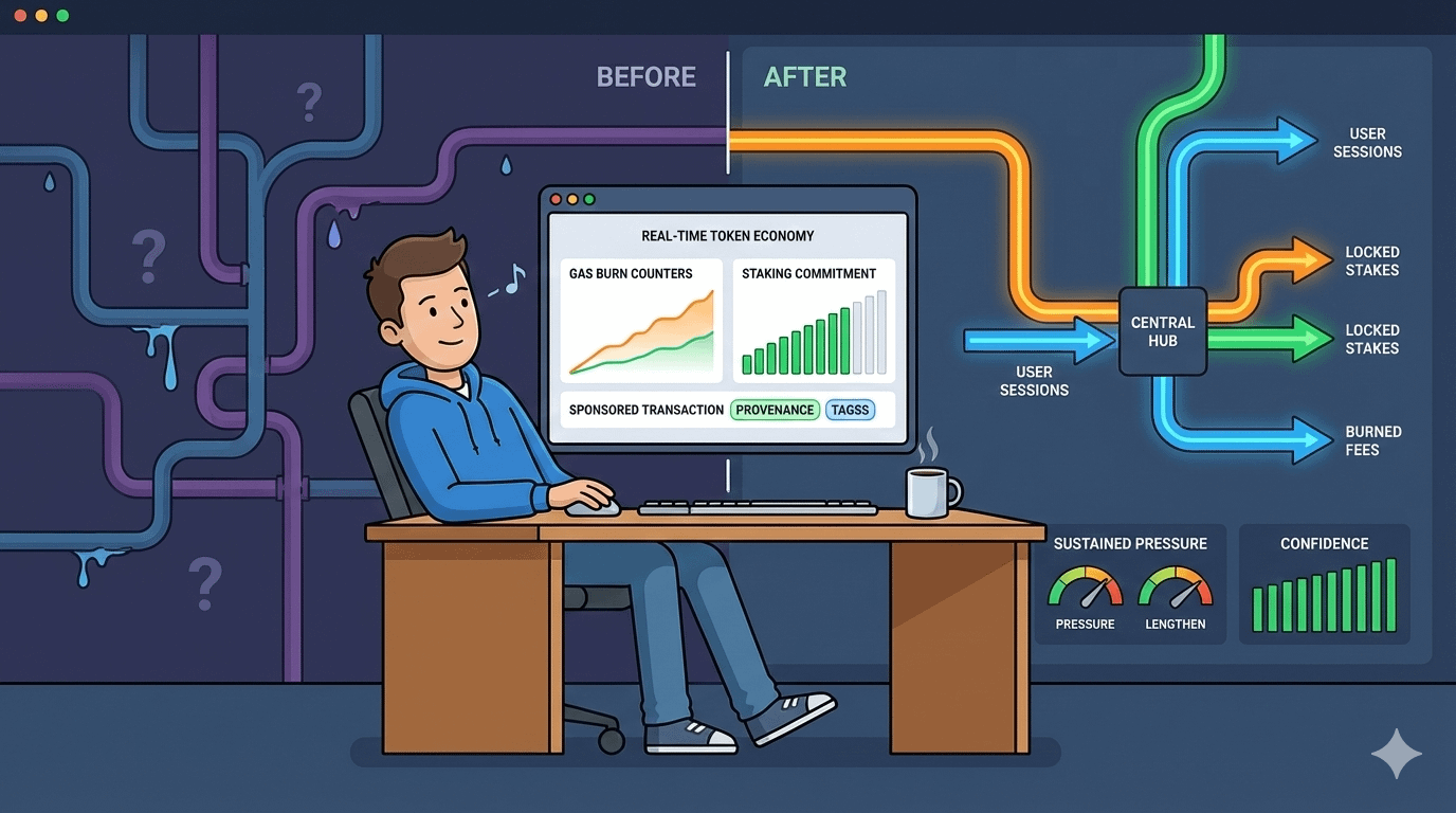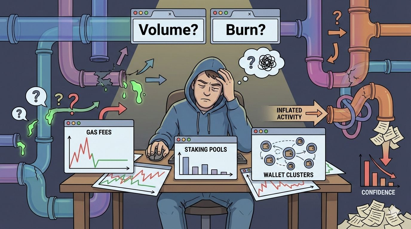The friction that grinds on you isn't the gas prices or the confirmation times. It's the quiet disconnect between what a token promises on paper and what actually moves in the background. You watch a project tout its economic model, but when you dig into the explorer, the fees are negligible, the staking is mostly team-controlled, and the real demand comes from airdrop farmers rotating in and out. You end up holding bags while the actual usage flows through abstracted layers or off-chain deals. Builders tolerate it because they need to bootstrap liquidity. Users tolerate it because the apps still feel snappy. The ones who take the hit are the holders who bought in expecting organic pull—watching their allocation get diluted by emissions that never quite tie back to real activity.