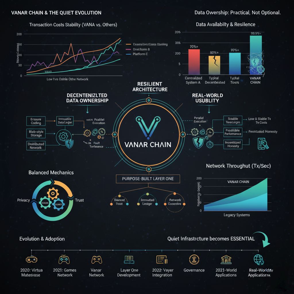 Markets tend to reward what is loud visible and immediately exciting. Quiet infrastructure often goes unnoticed until it becomes essential. When I look at Vanar I do not see something optimized for attention today. I see a system that is trying to solve the less glamorous problems of data ownership resilience and long term usability. Those efforts rarely generate instant excitement but they shape the foundations of what comes next. If decentralized technology is going to matter beyond theory it will be because projects like this quietly made data ownership practical rather than optional.