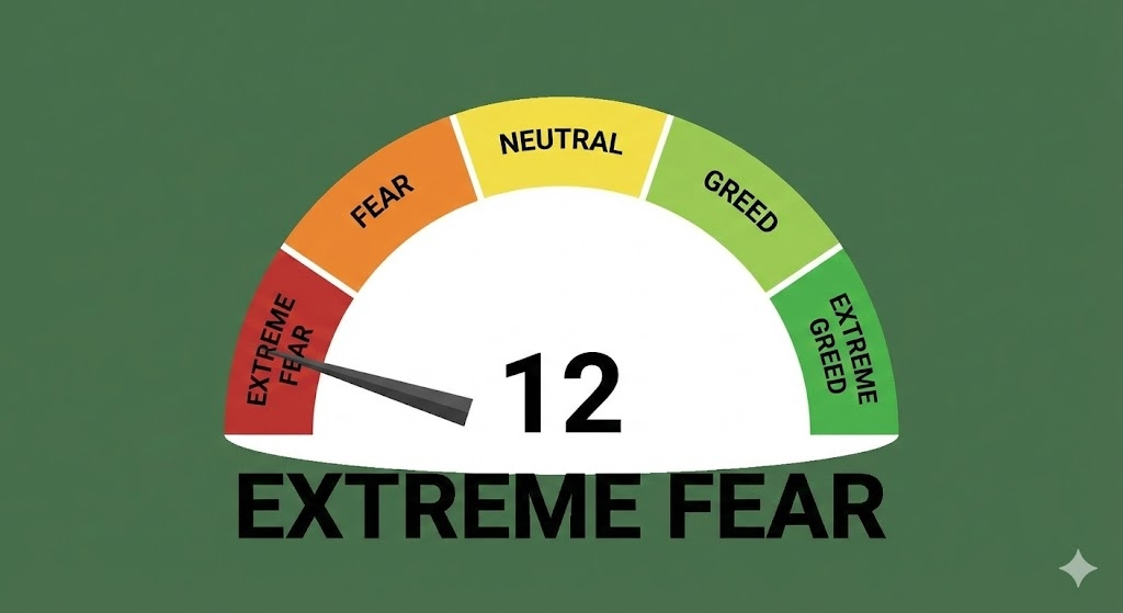 Extreme Fear (Index at 12) historically appears near local market bottoms.