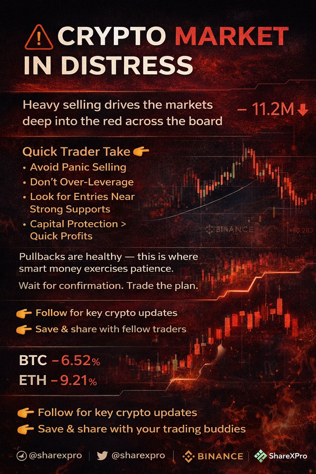 Today the market is under heavy pressure. Broad sell-off, weak momentum, and increased volatility across majors. This is not the time to chase trades — it’s the time to protect capital and wait for confirmation.