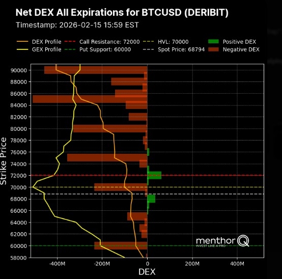 Net Exposure (DEX/GEX) ⚖️: Net DEX remains deeply negative at -$3.59 Billion, indicating a strong downward "gravity" from market makers.