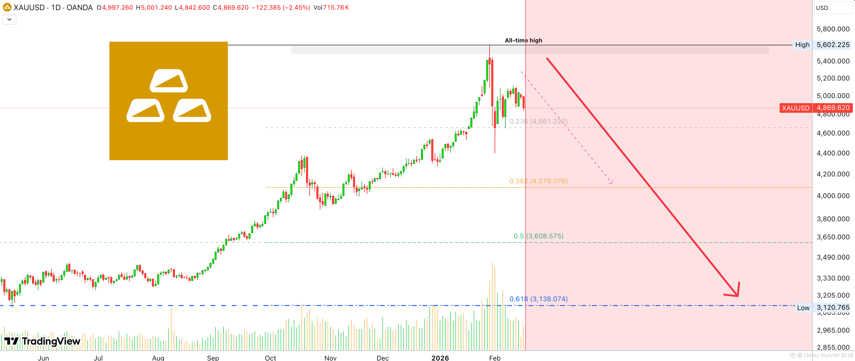 الذهب الآن لديه تحيز هبوطي قوي جدًا بعد قمة أقل واستمرار هبوطي. $4,100 هو الهدف التالي.