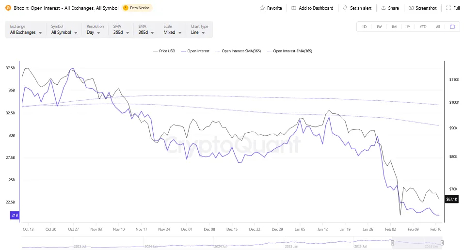 Ekspozycja instytucjonalna również się zmniejszyła. Oprocentowanie kontraktów terminowych na BTC spadło z około 37 miliardów dolarów do blisko 21 miliardów dolarów. To pokazuje, że wielu dużych graczy zmniejszyło swoje pozycje i czeka zamiast podejmować większe ryzyko.