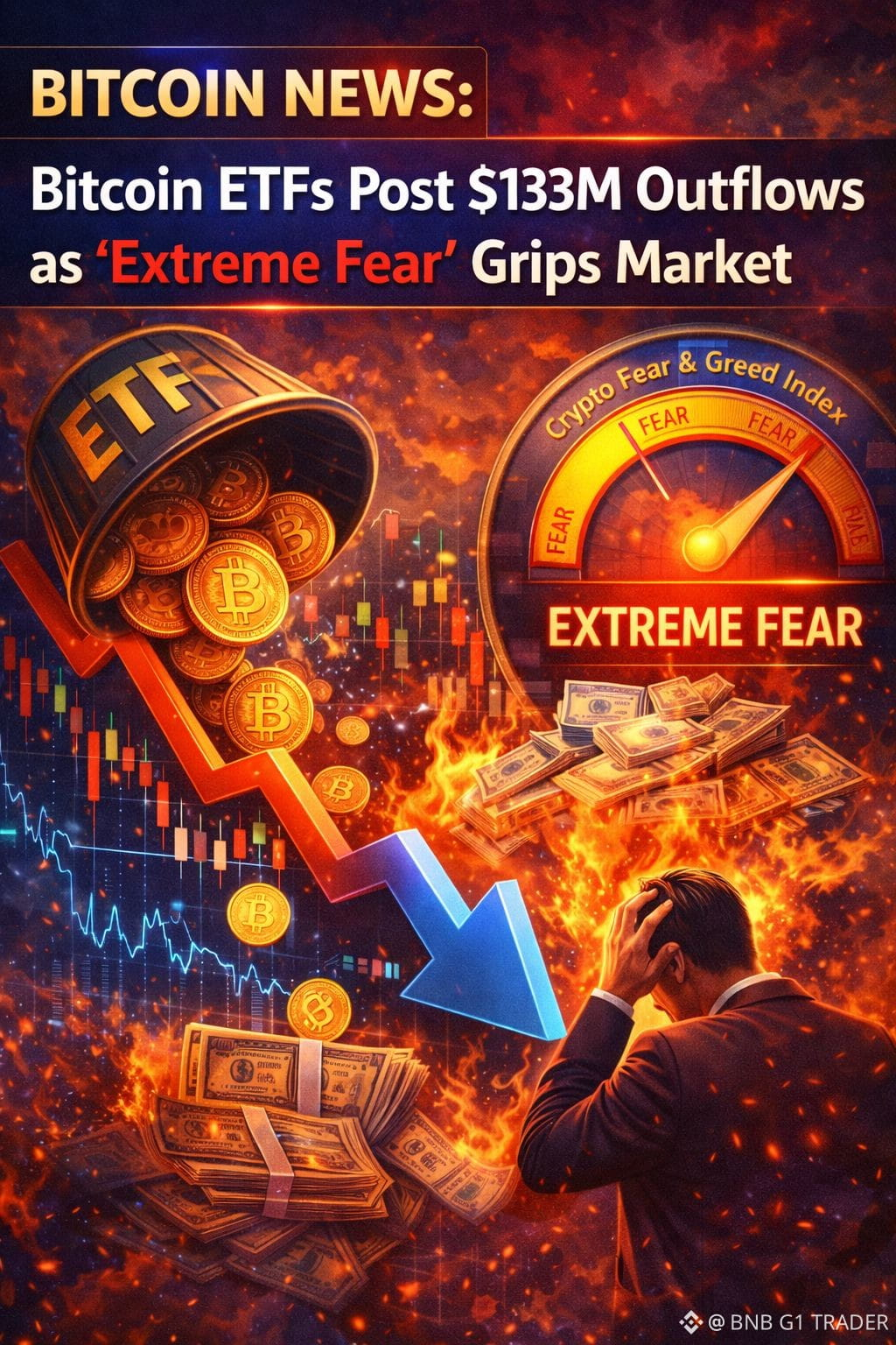 Bitcoin News: Bitcoin ETFs Post $133M Outflows as ‘Extreme Fear’ Grips Market$BTC