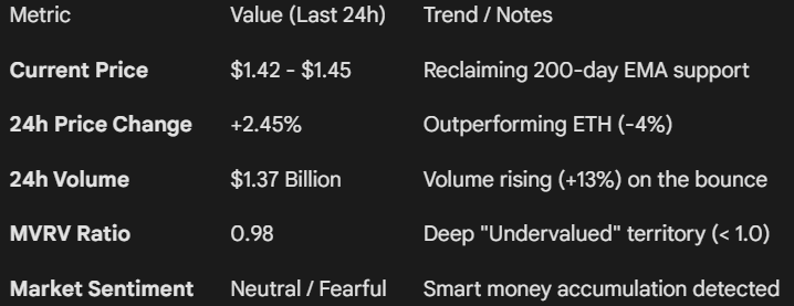 Derivatives Surge: Open interest has climbed 2.56%, with over 1.6 billion XRP now staked in futures contracts. This "coiling" effect typically precedes a violent directional move once the $1.57 resistance or $1.36 support breaks.