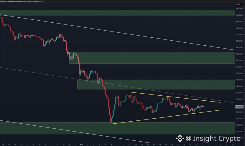 It’s whether it can reclaim and hold above $70K, because that level sits at the center of the current structural battle.