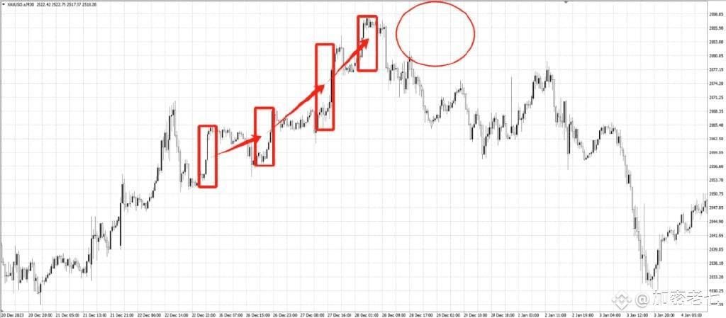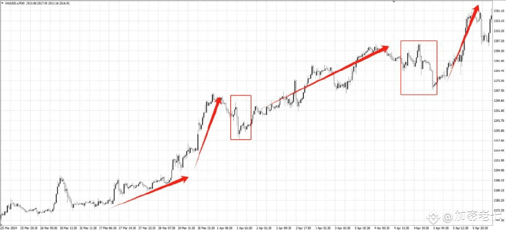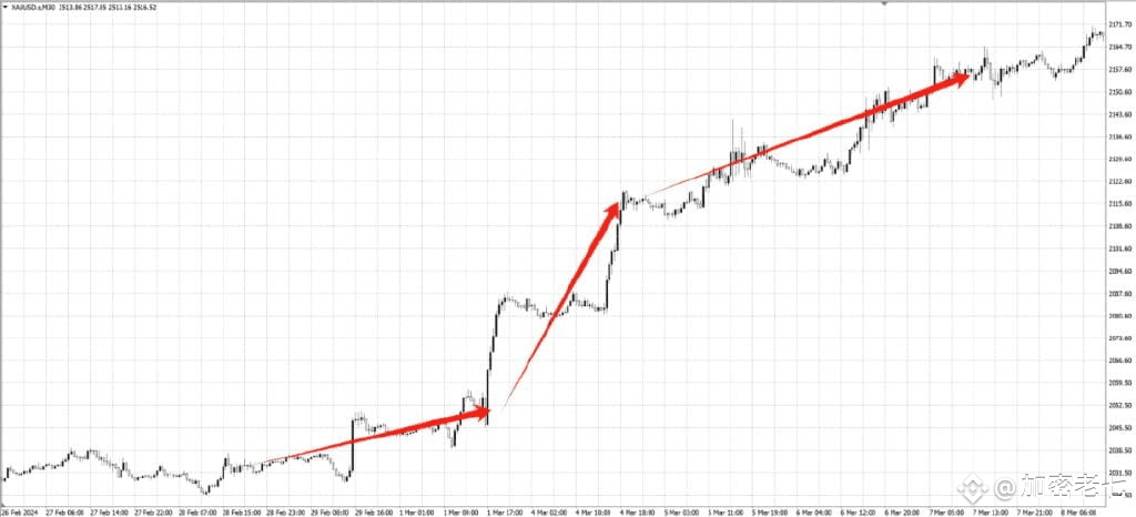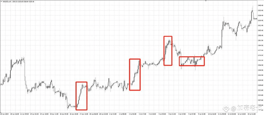 一般来说,当行情出现破位的时候,往往会回踩确认支撑,但是在强势行情时,由于市场情绪一致看多,多头不会给任何回调买入的机会,就会出现这种角度的强势拉升。