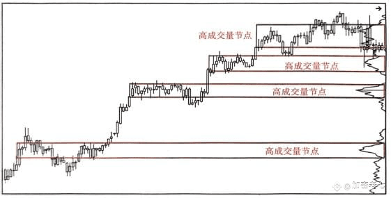 区间抬升除了符合道氏理论中的上涨常态外,也非常符合威科夫交易法的法则。在《威科夫2.0》中就提到过,每一个交易区间其实都对应了高成交量节点。
