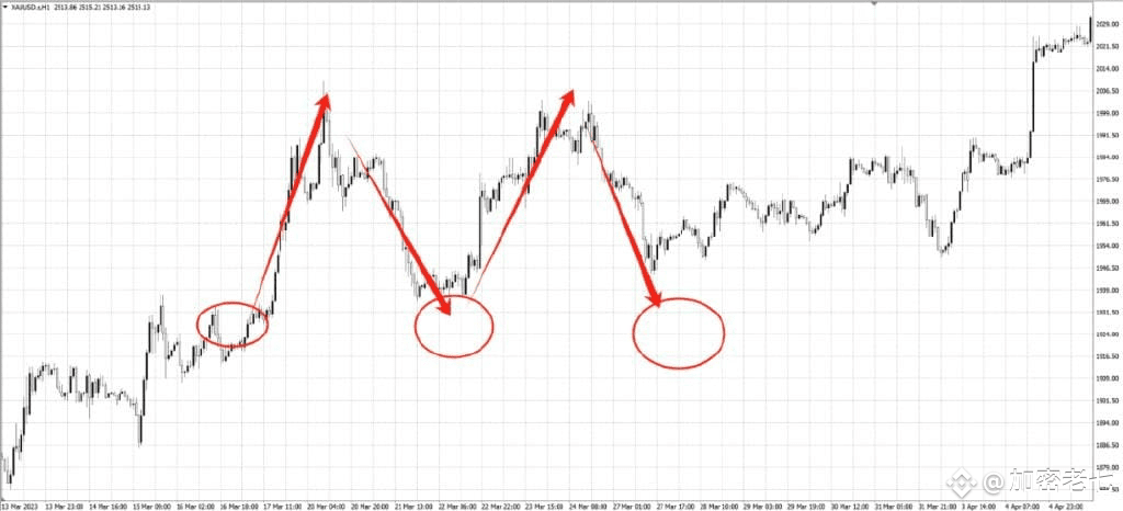 强势反向角度,就是弱势上涨时,突然快速下杀。