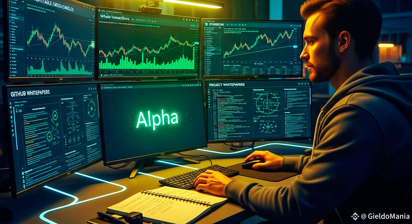 Alpha w krypto to nie tyle tajne informacje, co raczej o dostęp do wiedzy w odpowiednim momencie. Trzeba wiedzieć, gdzie można ją zdobyć: forum deweloperów projektu, dokumentacja z GitHuba albo ruchy wieloryba, zauważone na Etherscanie.