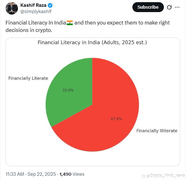 हाल ही में X पर कहिफ़ रज़ा ने कहा कि भारत में वित्तीय साक्षरता केवल 33% है और वित्तीय असाक्षरता 67% है। ऐसे में यह उम्मीद करना मुश्किल है कि आम लोग क्रिप्टो में सही निर्णय लेंगे।