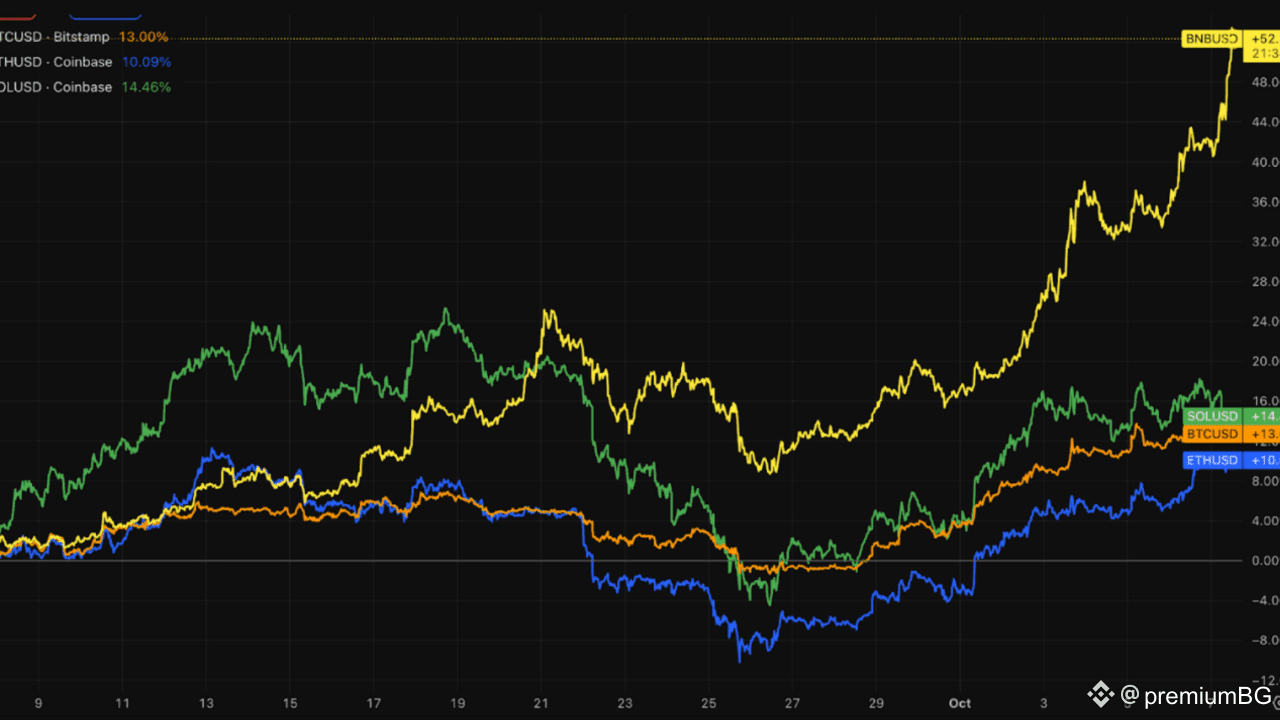 When we talk about crypto in 2025, the focus is usually on coins like Bitcoin, Ethereum, Solana. But recently one token has come back into the spotlight: Binance Coin ($BNB). And not just as another alternative. $BNB has been outpacing Ethereum and Solana in growth for much of this year. And if we take a look at the last month – the picture is even more impressive. Why exactly $BNB? The short answer is: network effects from Binance Smart Chain (BSC). BNB is not just an exchange token. It is the fuel of the entire Binance Smart Chain ecosystem, where serious activity is currently boiling. In every DeFi hype, it is BSC that attracts huge liquidity and mass users, thanks to low fees and wide accessibility. New projects, new peaks The latest hit in the BSC ecosystem is Aster – a decentralized derivatives exchange (Perp DEX), which generates huge volume and attracted the attention of the community. Exclusively on Altcoins.bg – Aster ($ASTER) But that's not all. PancakeSwap (CAKE) – the first and largest decentralized exchange on BSC – has also seen strong gains in recent days. Together, these two projects show how “alive” the ecosystem is and why $BNB benefits from every new move there. BNB’s advantage is clear: when projects on the network perform well, demand for the token automatically rises – because it is the main fuel for transactions and DeFi activity on BSC. Tokenomics on steroids Another key factor: Binance buys and burns about $1 billion in $BNB per quarter. This means that supply is constantly decreasing while demand is increasing. A classic formula for price appreciation. BNB enters the top 3... What does this mean for investors? The formula behind success If we had to boil it down to one simple formula: - Global user base - Integration into an entire ecosystem of products - Large-scale buybacks and burns = BNB returns to the top 3 cryptocurrencies by market cap. What does this mean for investors? This is not financial advice, but an observation: $BNB may not be doing 10x in a week, but the reality is that it is quietly and steadily gaining ground thanks to the ecosystem behind it. BNB combines an active network, DeFi hype, and diminishing supply mechanics.