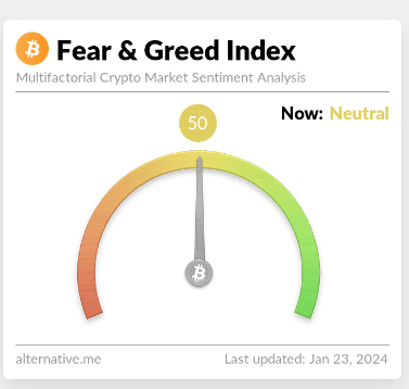 Wskaźnik Strachu i Chciwości wynosi obecnie około 50 punktów.