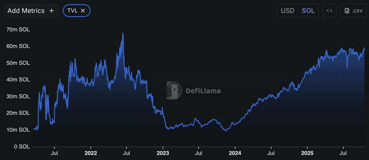🚨 TVL Solany (w SOL) osiągnął najwyższy poziom od ponad 3 lat