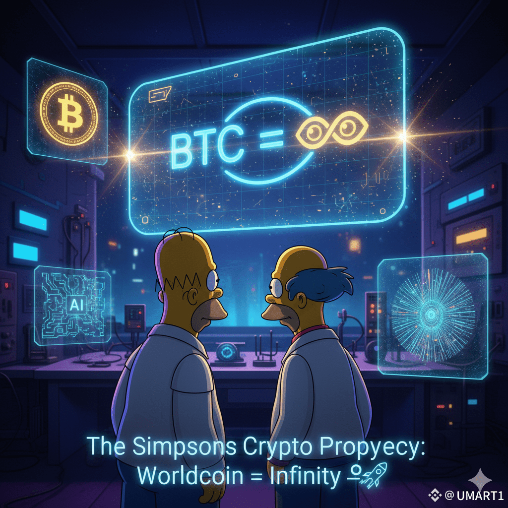 In Season 31, Episode 13 (Frinkcoin), The Simpsons flashed a chart showing “BTC = ∞” — infinite Bitcoin.