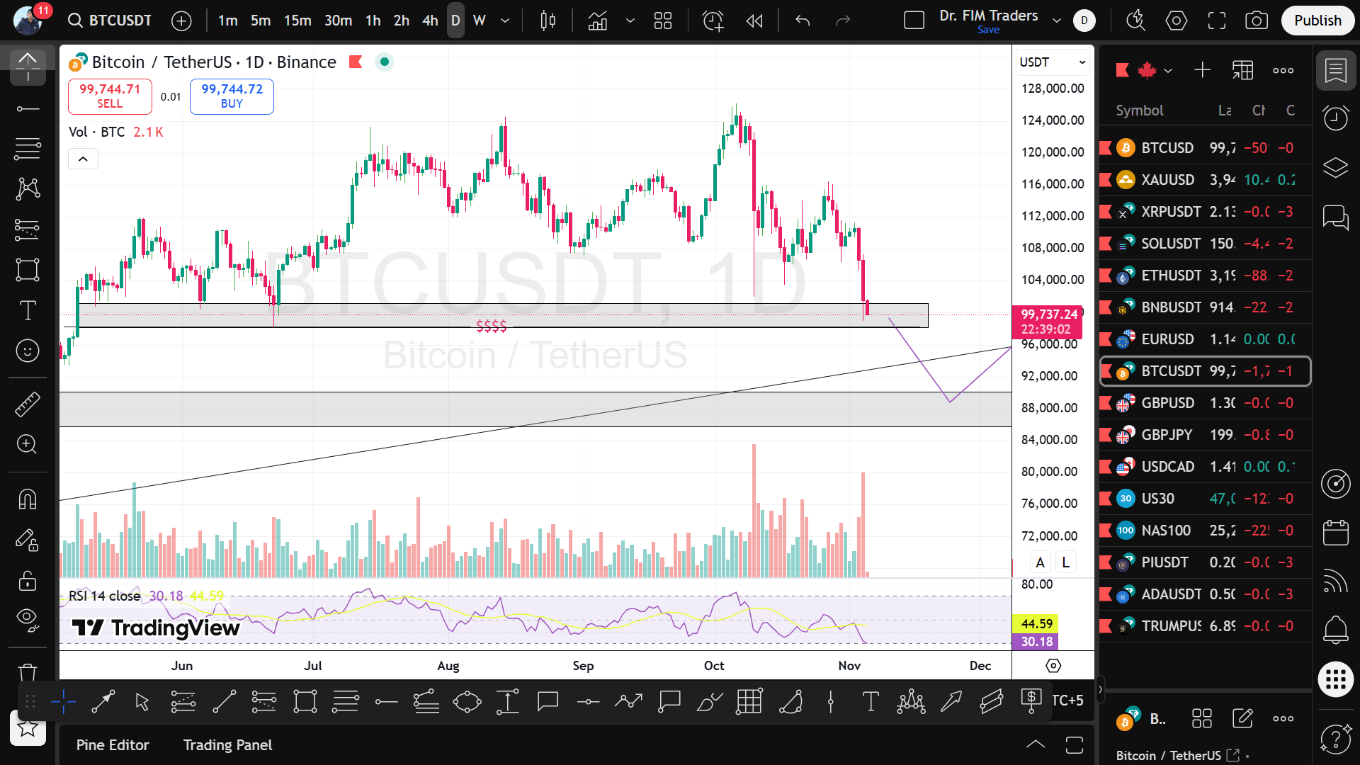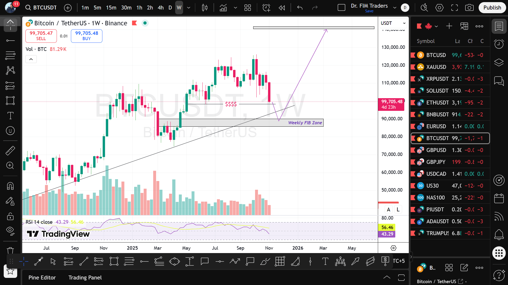 $BTC Cześć, chłopaki. Jestem tutaj, aby podzielić się szczegółowym następny ruchem bitcoina na podstawie mojej analizy technicznej. Zanurzmy się w analizę tygodniową, #bitcoin dotknie poziomu $USDT 90k, a to opiera się na dziennej ramie czasowej. Ponieważ jest dużo płynności poniżej poziomu 100k, rynek weźmie tę płynność detalistów i spadnie do poziomu 90k. Jest również poziom fib, a rynek dotknie tygodniowej linii trendu. Stamtąd wzrośnie do najwyższego poziomu w historii.
