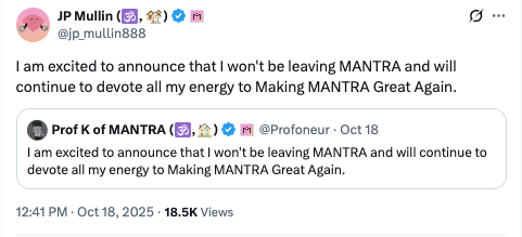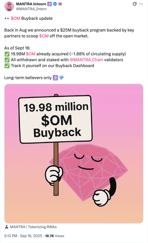 Oficjalny post MANTRA: https://x.com/MANTRA_Chain/status/1967913912478928973