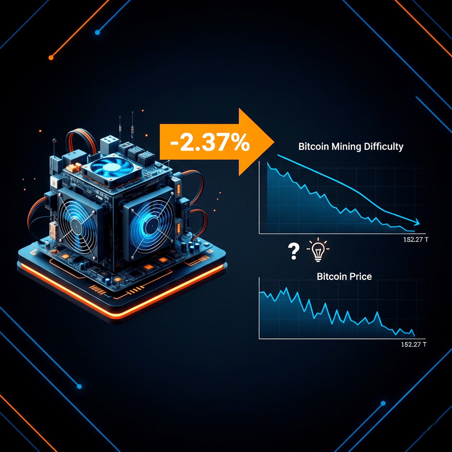 📉 Trudność wydobycia Bitcoina dostosowuje się w dół: